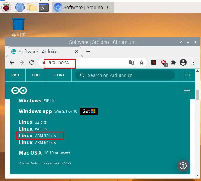 우선 https://www.arduino.cc/ 에서 SOFTWARE로 이동해서 [Linux ARM 32 bits] 버전을 다운 받자.