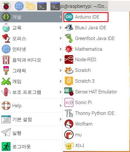 설치 과정이 완료되면 다음과 같이 라즈베리4에 아두이노 IDE가 설치된 걸 확인할 수 있다.