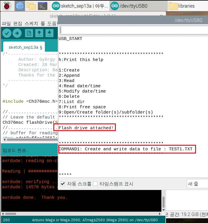 - USB 저장장치를 연결하고 Serial2를 통해 데이터 저장과 출력.